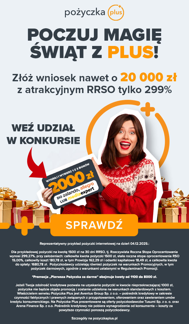 Od dnia 17.12 organizowany jest konkurs w Pożyczka PLUS – „Poczuj magię świąt z PLUS!”
