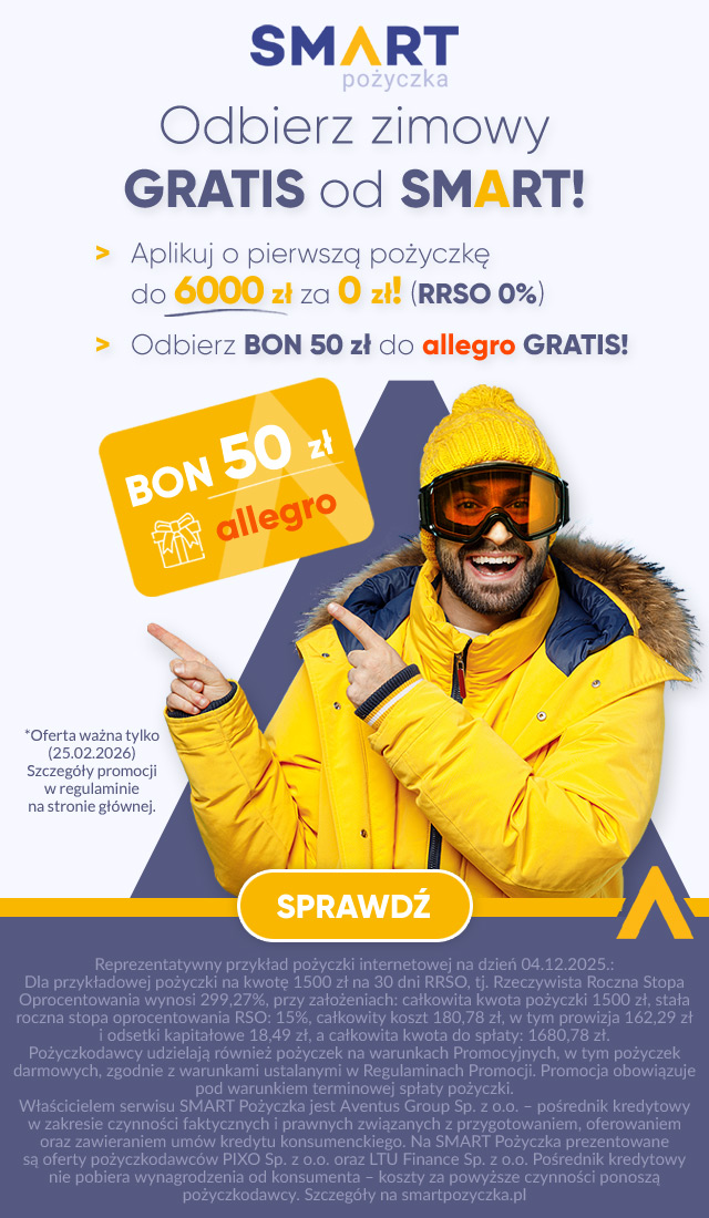 Klient, który zawnioskuje o pierwszą pożyczkę na min. 1500 zł otrzyma bon do allegro o wartości 50zł